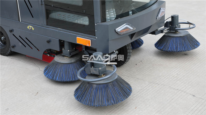 五刷全封閉駕駛室掃地機是掃地、噴水、吸塵相結合的自動駕駛式清潔能源綜合機器。清掃如粉塵、樹葉、煙頭,煙盒、小石子等垃圾。廣泛使用于學校、車間、車站、碼頭、賓館、物業、倉庫、地鐵站等區域。清掃效率是傳統的人工清掃效率的10-12倍,一臺掃地機可代替10-12位清潔工人。