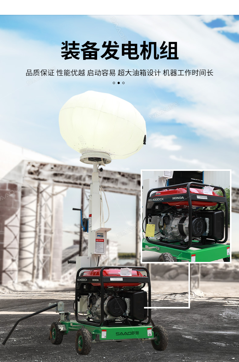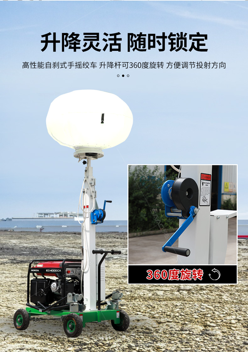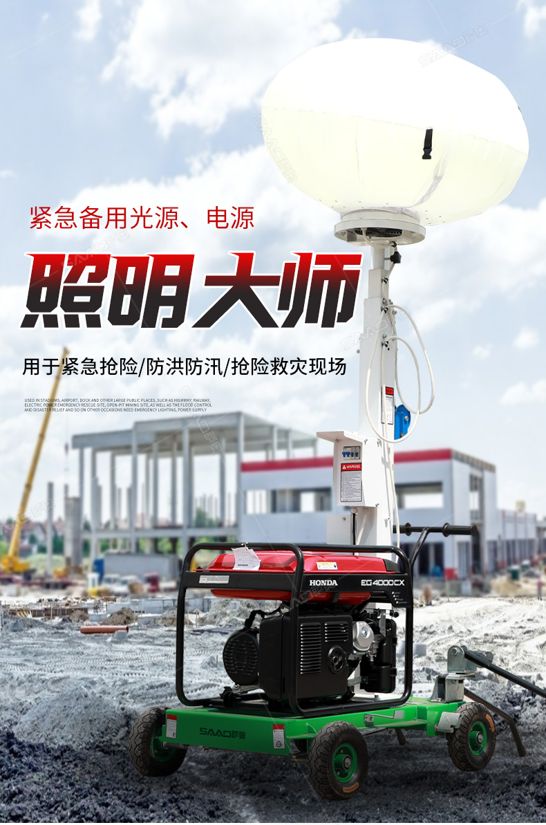 球型工程照明車(chē)SZM-Q1000用于體育場(chǎng)館、機(jī)場(chǎng)、碼頭等大型公共場(chǎng)所,公路、鐵路、電力等緊急搶險(xiǎn)現(xiàn)場(chǎng),露天采礦現(xiàn)場(chǎng),以及防洪防汛、搶險(xiǎn)救災(zāi)現(xiàn)場(chǎng)等其他需要緊急備用光源