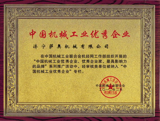 薩奧獲得“中國機械工業優秀企業”稱號