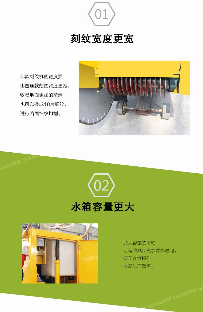 牧場防滑刻紋機為我公司新研制的一款特制的新型產品,該款刻槽機主要適用于養殖場、奶牛場、牛棚、牧業等各類混凝土地面、跑道、廣場、室內刻制防滑紋(兼散水紋)的一款新型機器。紋理排列有序、槽紋表面清晰美觀、操作便捷,是養殖業針對地面防滑的一款新型機械。