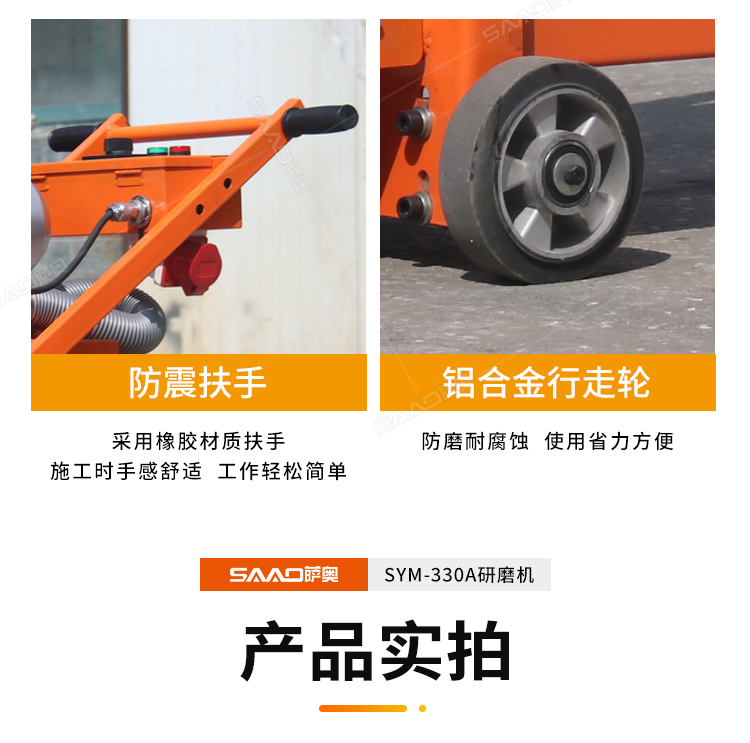 SYM-330手推式無塵地面研磨機,是集研磨和吸塵為一體的先進的路面機器,邊打磨邊吸塵,為我們提供良好的無塵打磨環境。特別是在地面混凝土強度低的情況,如果配上砂紙磨片,也可以打磨環氧膩子層;同時對環氧膩子層的磨損小,提高環氧地面的平整度。