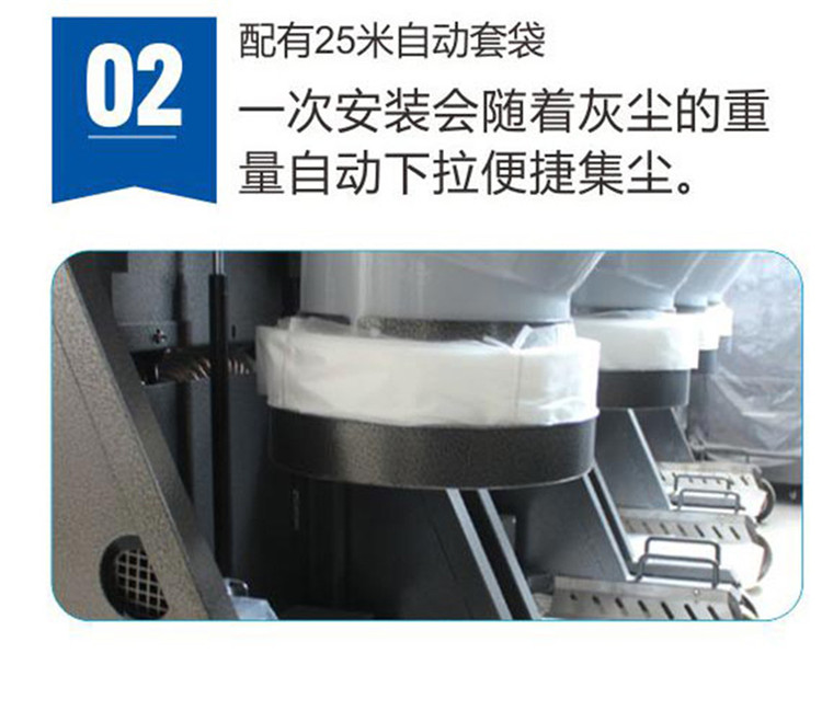 2.配有25米自動套袋,一次安裝會隨著灰塵的重量自動下拉,非常便捷,而且節省清潔時間。