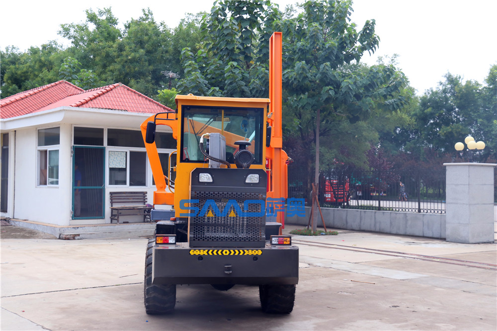 裝載機(jī)式護(hù)欄打樁機(jī)是薩奧機(jī)械根據(jù)市場需求和自身技術(shù)成熟的情況下面向客戶需求而研發(fā)的一款產(chǎn)品,是集裝載、打樁、鉆孔等功能為一體的新型產(chǎn)品。采用全新設(shè)計(jì)理念、精心研制整體功能,結(jié)構(gòu)模塊化兼顧的設(shè)計(jì)思想,全封閉各木式安裝結(jié)構(gòu),更利于產(chǎn)品快速安裝和轉(zhuǎn)場,可廣泛運(yùn)用于公路、高速等路面護(hù)欄的樁孔鉆進(jìn)工作。