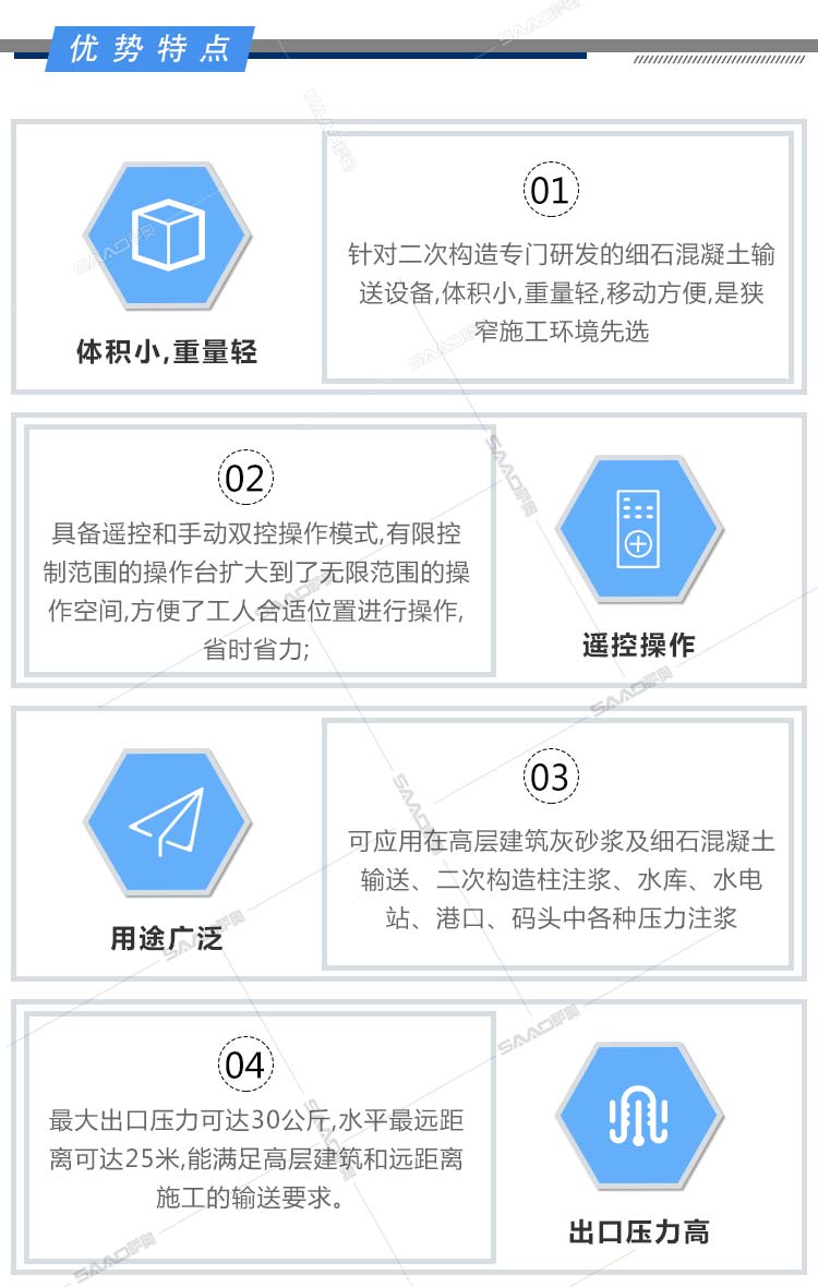 薩奧63型二次構造柱澆筑泵適用于商品房、農村建房、打二次構造柱,圈梁等。