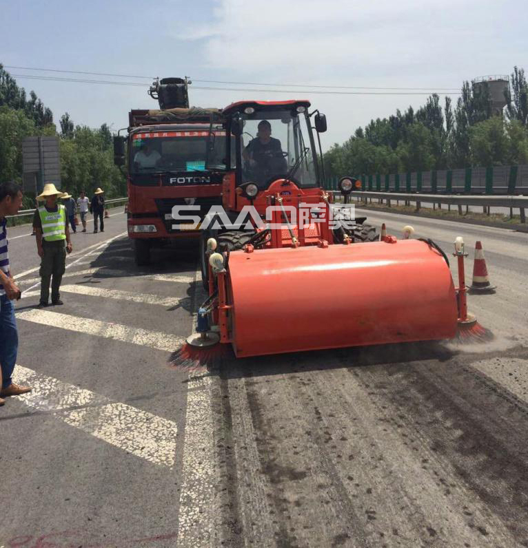 根據(jù)路面作業(yè)要求,在攤鋪瀝青作業(yè)前,要求水穩(wěn)層或銑刨路面保持清潔,不能有沙石等雜物。一般情況下每50公里10人需要5個(gè)工作日。而薩奧道路施工強(qiáng)力清掃機(jī)最多只需要1個(gè)工作日就可以清掃干凈,大大提高了安全性和效率。