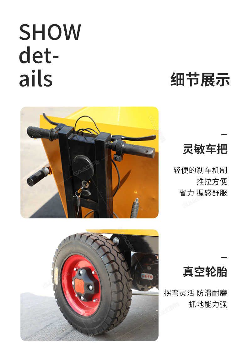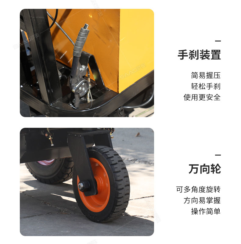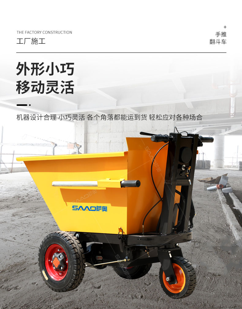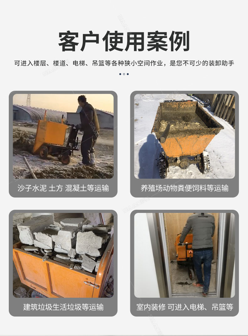 產(chǎn)品介紹: 此款車適用于建筑工地、室內裝修、養(yǎng)殖場、工廠等場所,運輸沙子、水泥、土方、混凝土、建筑垃圾生活垃圾、養(yǎng)殖場動物糞便、飼料等,體積小操作簡單靈活,可原地360度轉圈,可進入樓層、樓道、電梯、吊籃等各種狹小空間作業(yè),是您必不可少的裝卸助手。