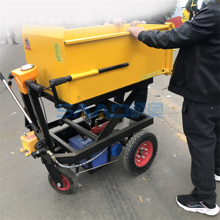 升降式混凝土小推車其主要特點是料斗升降式、尾后出料口和電動行走。