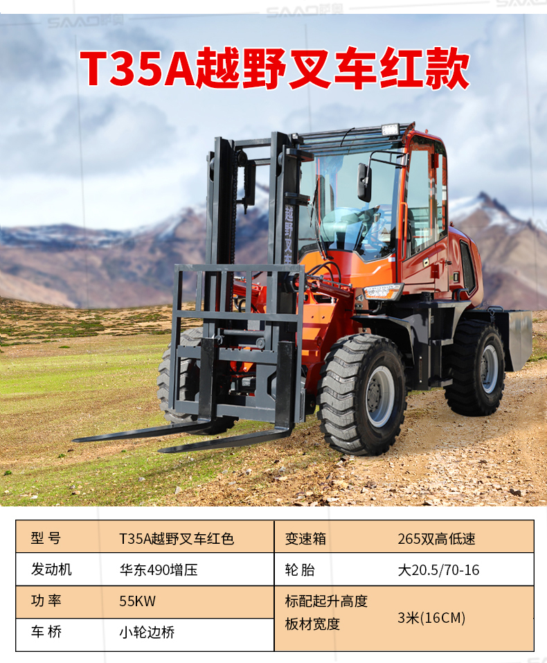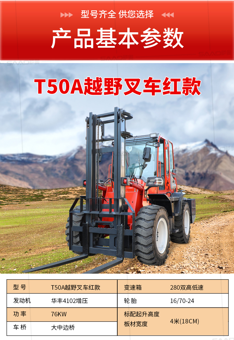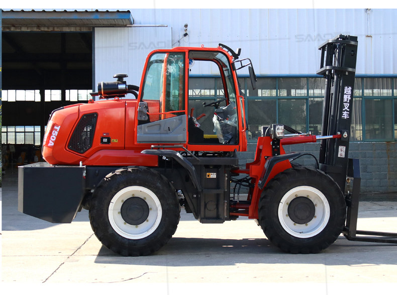 越野叉車可以在坡地和不平地面上進行貨物裝、卸、堆垛及搬運作業,具有良好的機動性、越野性可靠性。其功能多樣,可搭配側移器、調距叉、旋轉器、軟包夾、推出器、側翻叉、側