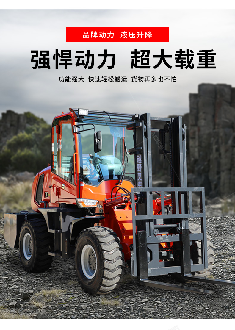 5.越野叉車(chē)車(chē)身寬大,能承載不規(guī)則和寬大的