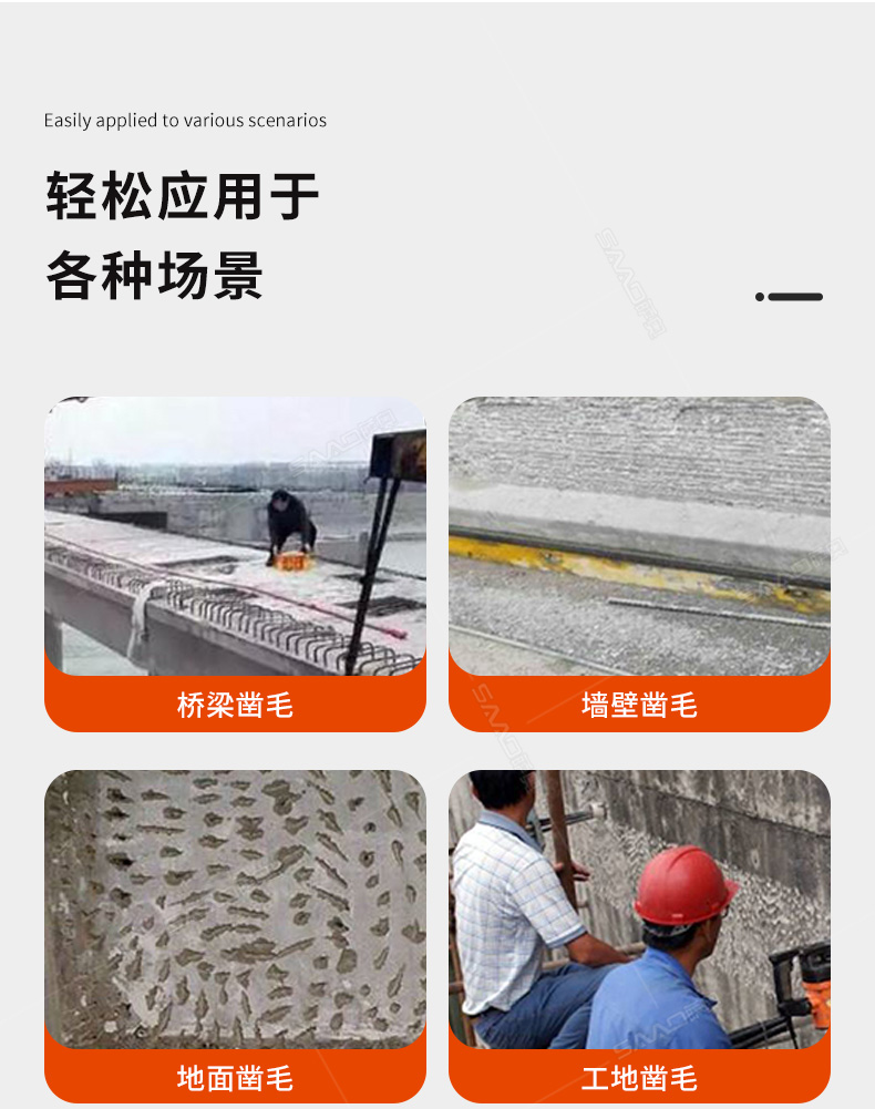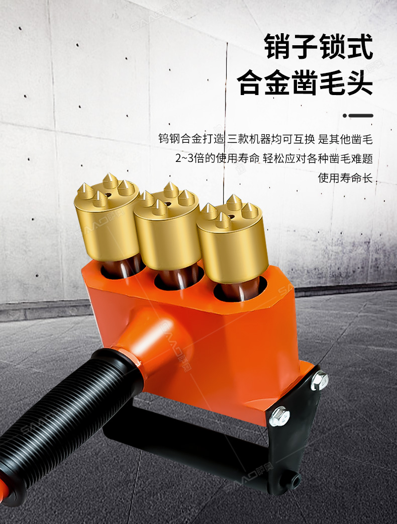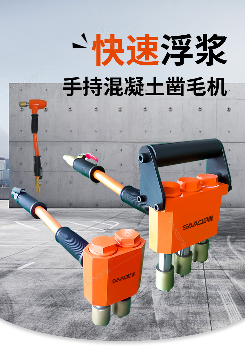 手持式鑿毛機主要用于混凝土剔鑿,水泥表面的打點、粗糙、清除浮漿;兩次鋪裝前清除舊的混凝土。 手持式鑿毛機是利用活塞打擊的方法在混凝土表面鑿毛,用來使新舊混凝土粘結(jié)