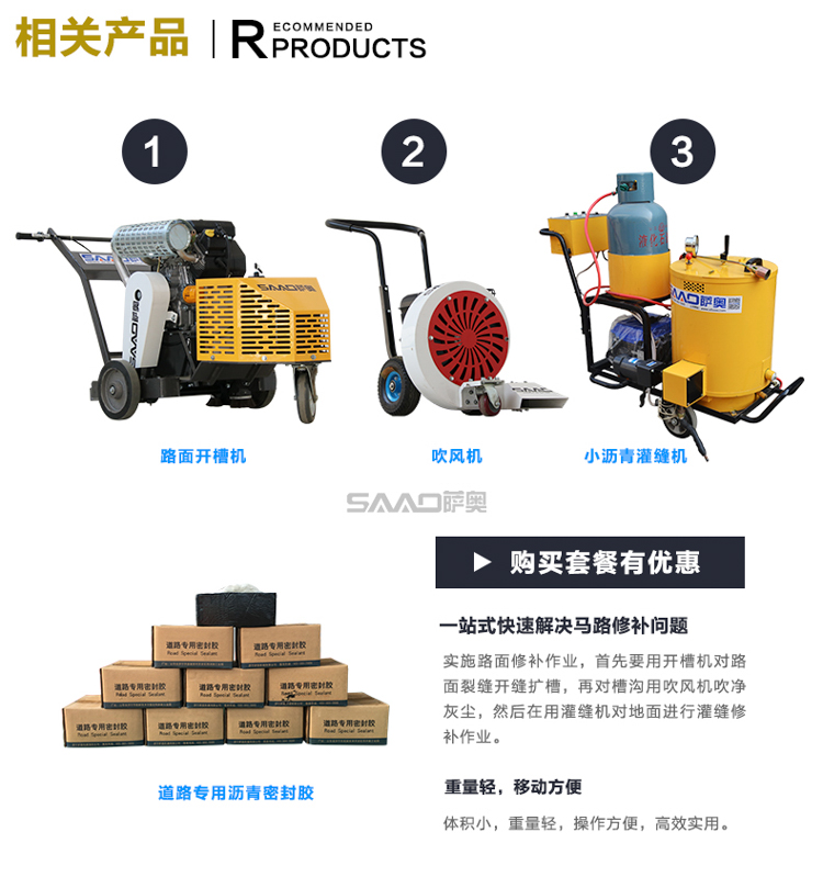 我廠生產制造高溫穩定性和低溫抗脆裂性馬路專用密封膠,庫存足,全國閃電發貨!我廠專業生產路面設備12年,路面裂縫修補三件套:馬路開槽機,馬路吹風機,瀝青灌縫機,質量保證!如需了解請致電24小時免費電話:400-860-5689