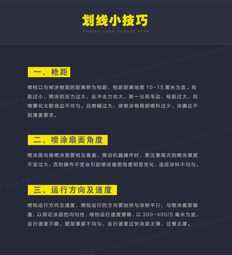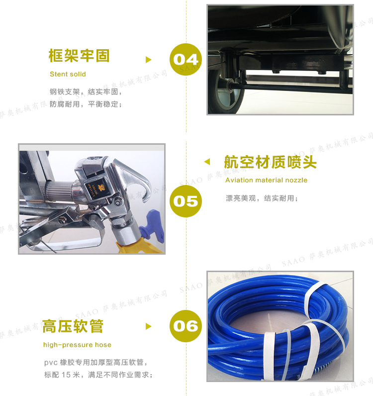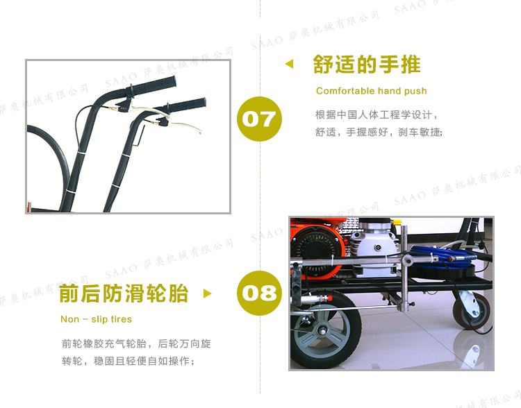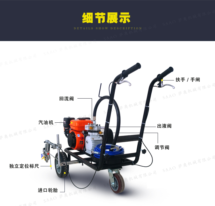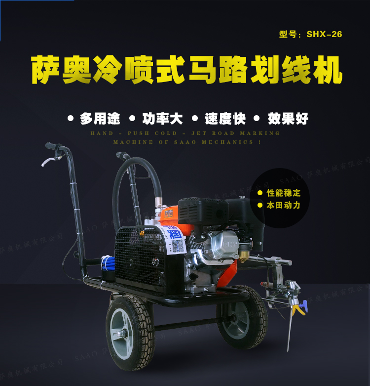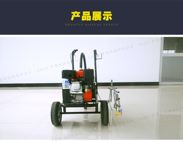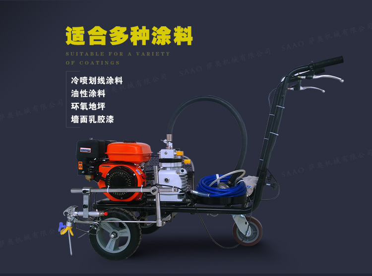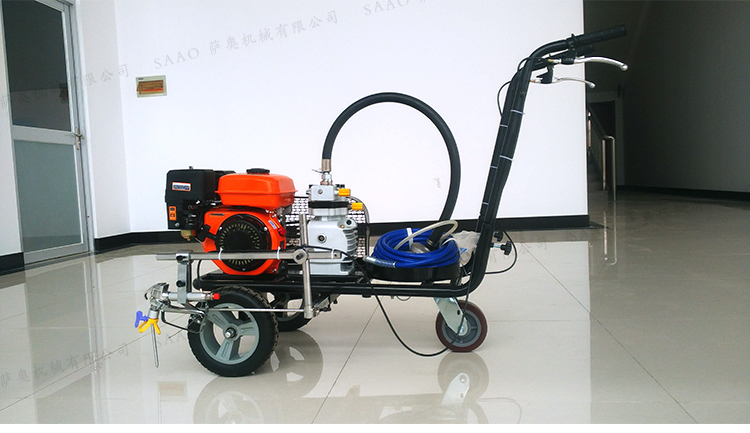 冷噴劃線機(jī)用汽油機(jī)帶動(dòng)高壓泵的無(wú)氣噴涂技術(shù)運(yùn)用于運(yùn)動(dòng)場(chǎng)地劃線車,噴出的線型清晰、流暢、飽滿、均勻、工作效率高。