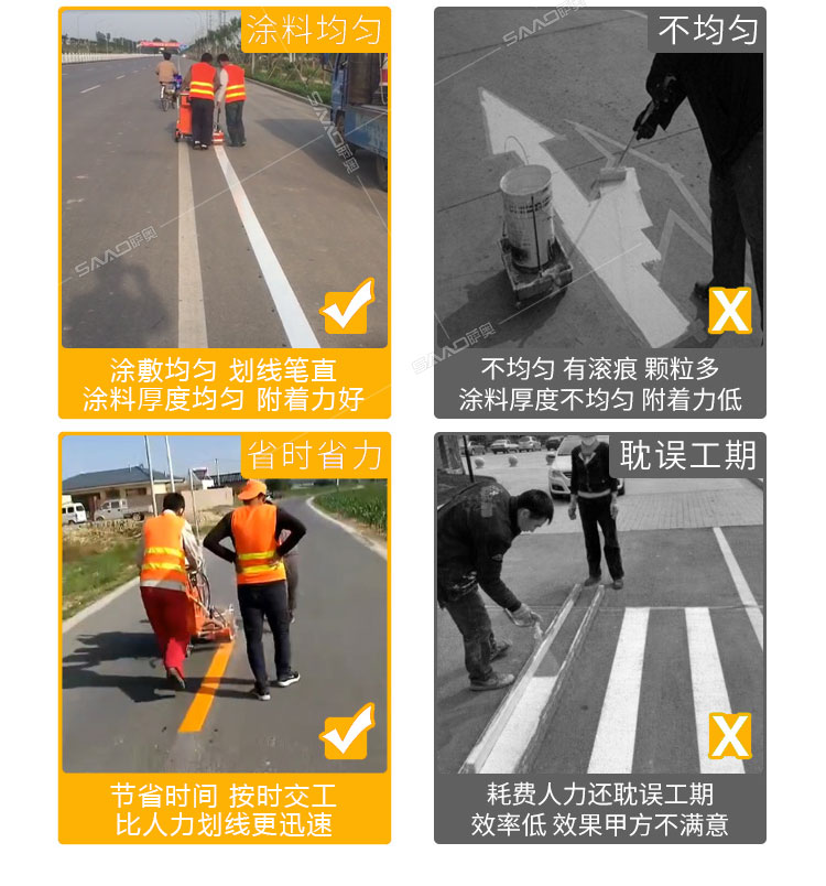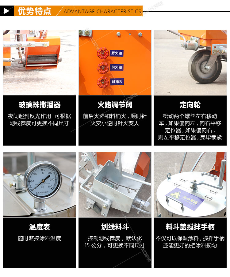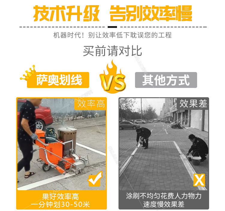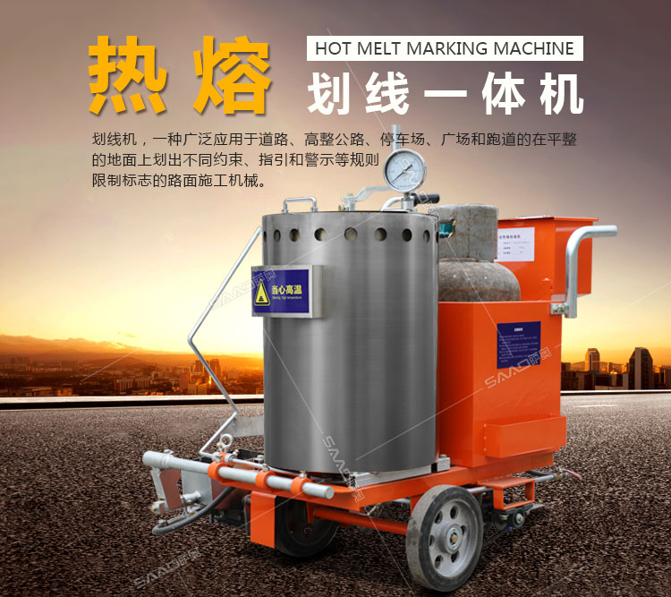 手推式熱熔劃線一體機(jī),一種廣泛應(yīng)用于道路、高整公路、停車場(chǎng)、廣場(chǎng)和跑道的在平整的地面上劃出不同約束、指引和警示等規(guī)則限制標(biāo)志的路面施工機(jī)械。劃線機(jī)以其快速、高效、