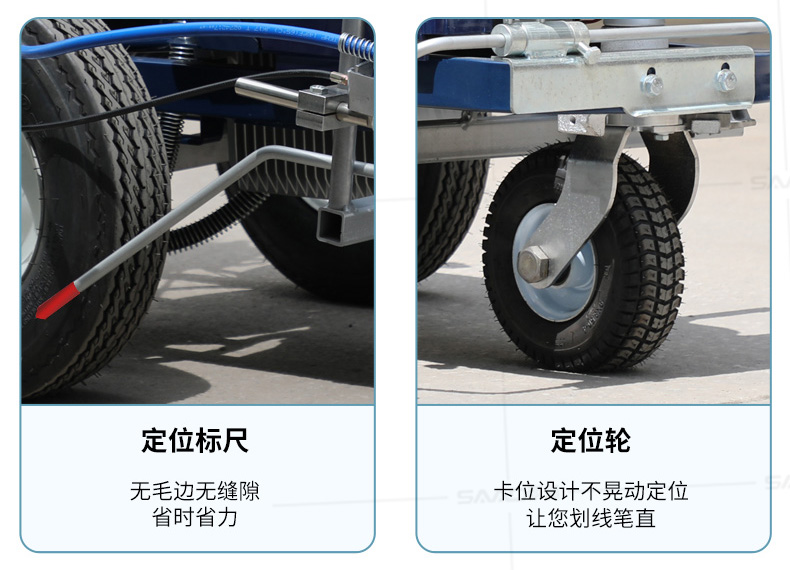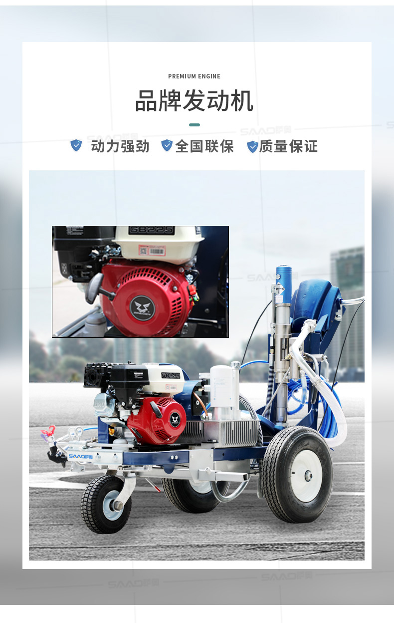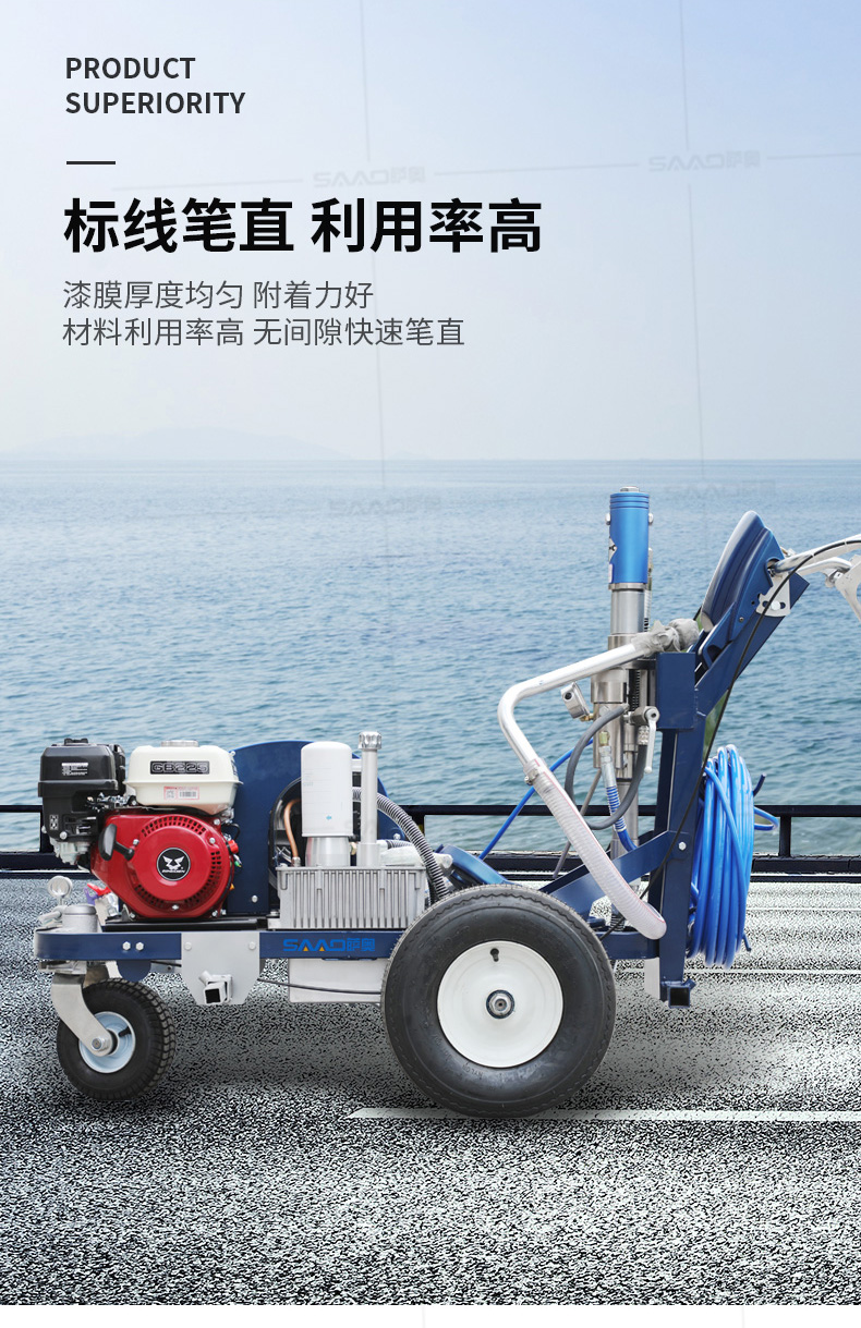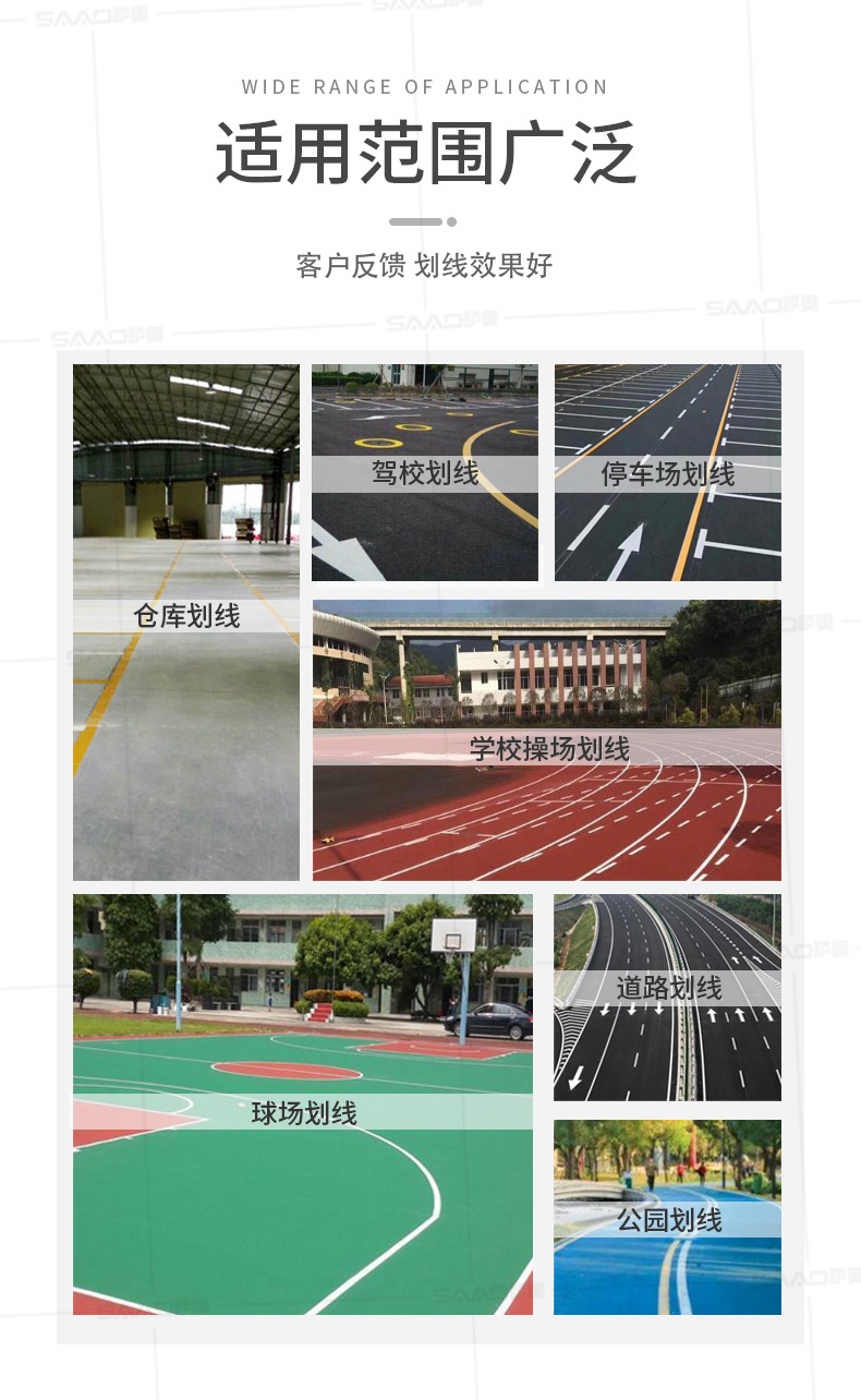 主要用于公路、市區、停車場、機場等涂劃直線、虛線、曲線、文字、箭頭等。具有劃線效果好、速度快、效率高、適用范圍廣、使用方便等優點。