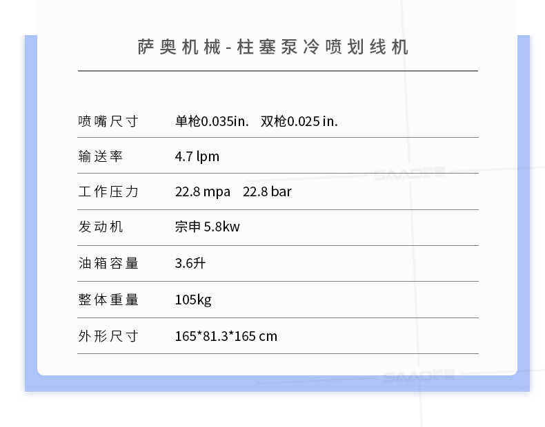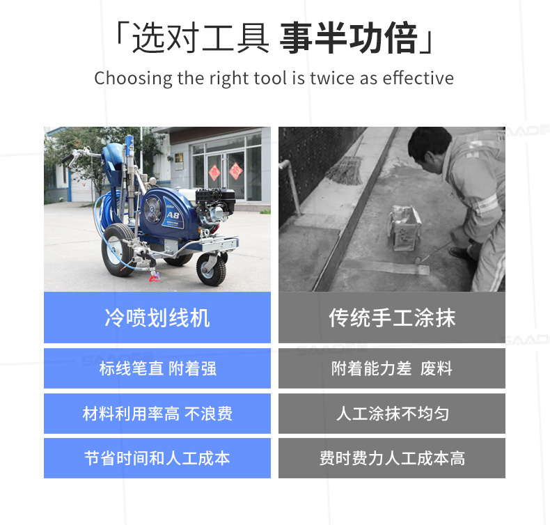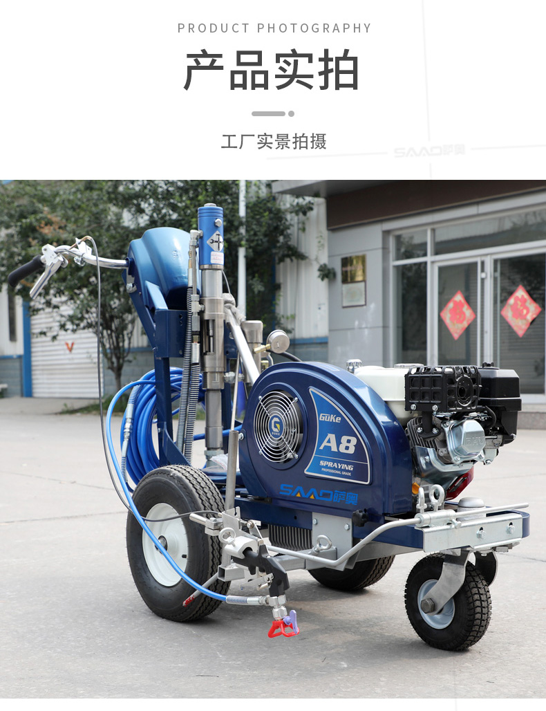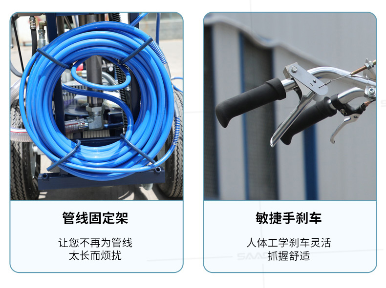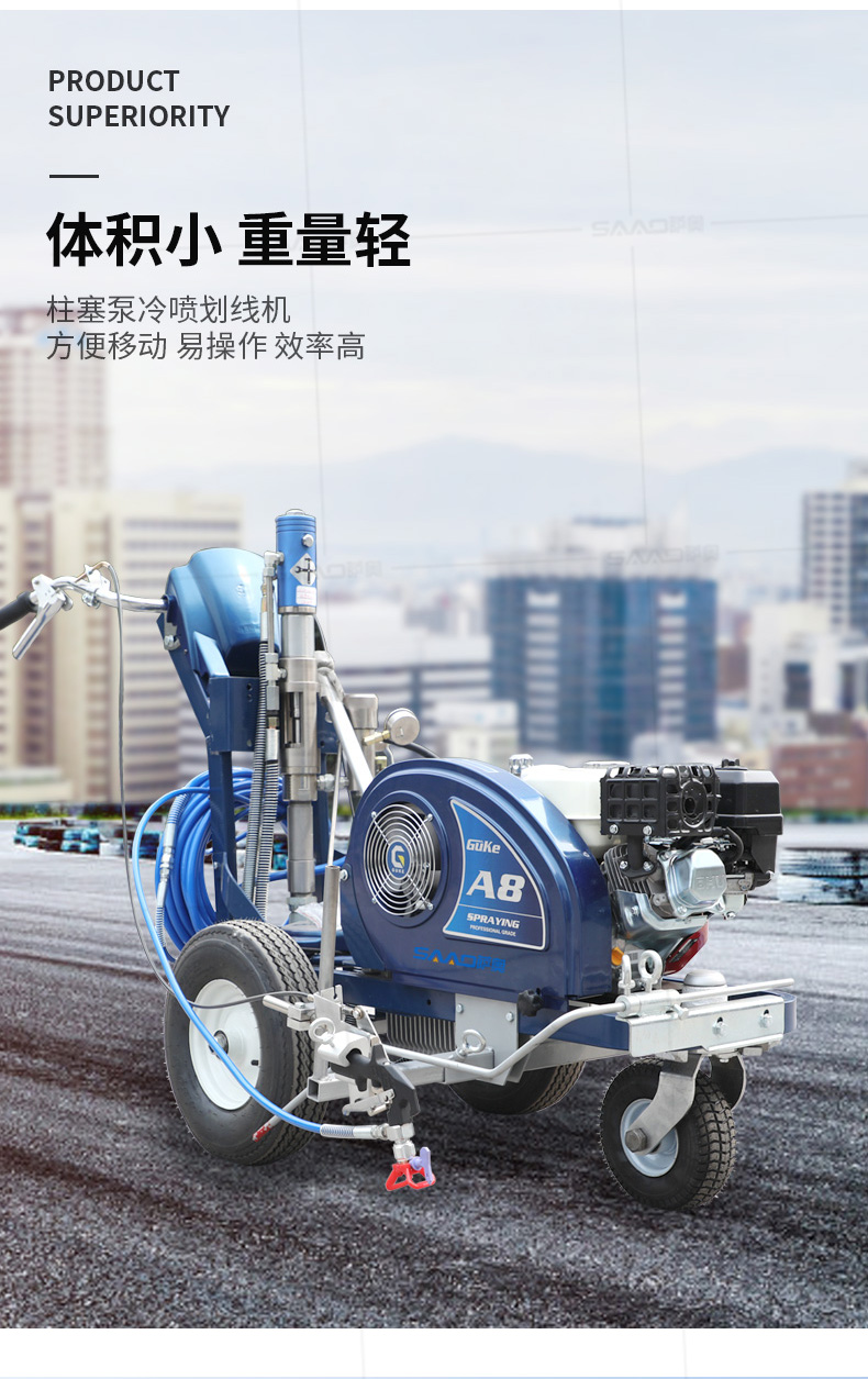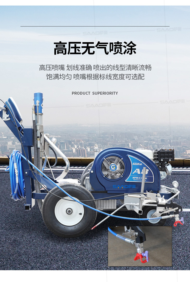 主要用于公路、市區、停車場、機場等涂劃直線、虛線、曲線、文字、箭頭等。具有劃線效果好、速度快、效率高、適用范圍廣、使用方便等優點。