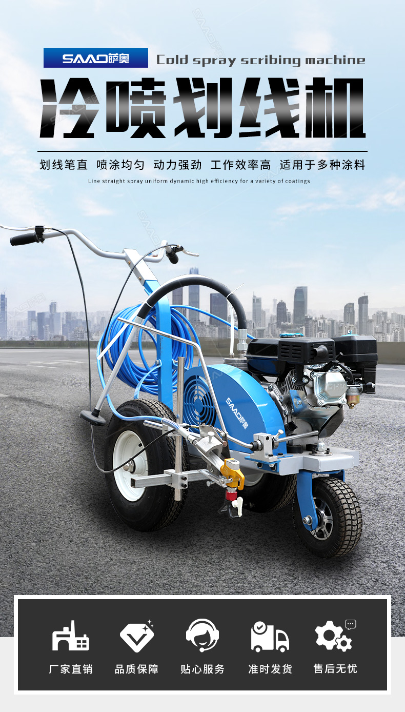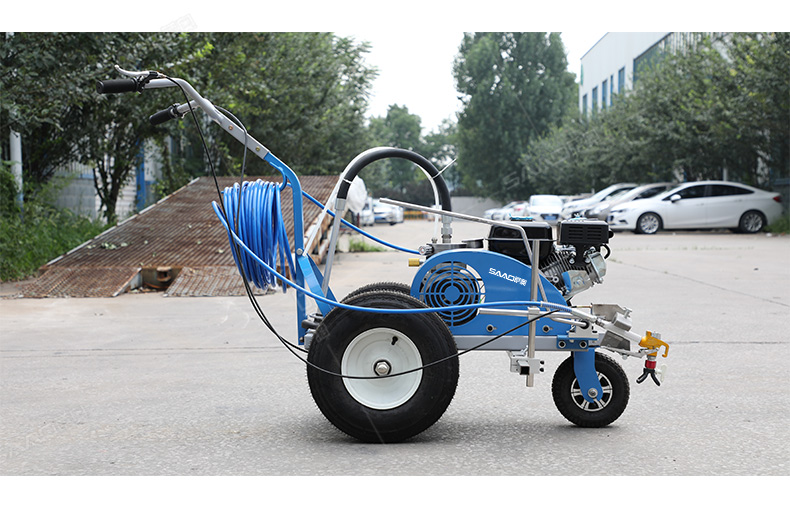 主要用于公路、市區、停車場、機場等涂劃直線、虛線、曲線、文字、箭頭等。具有劃線效果好、速度快、效率高、適用范圍廣、使用方便等優點。 【優勢特點】 1.高壓噴嘴劃線,準確