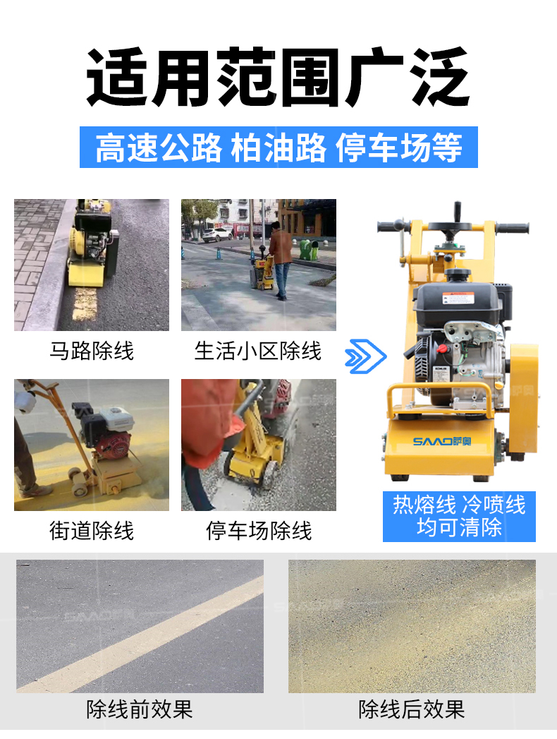 標線清除機是用來清除殘損、龜裂、變色、錯劃等標線的專用型清除設備。