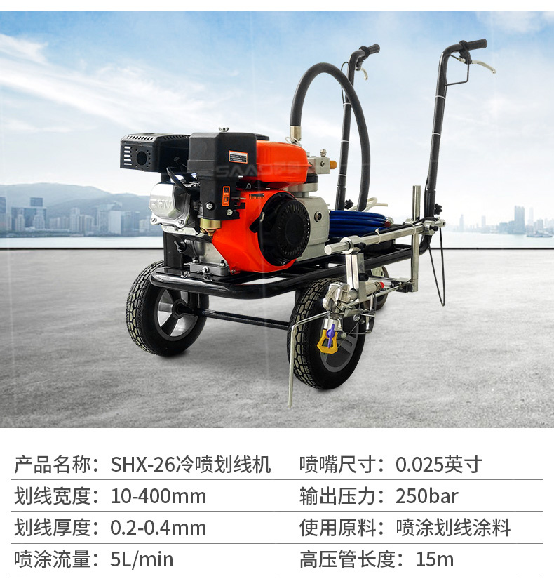小型手推式道路劃線機是一種在道路、停車場、廣場和跑道等平整地面上劃出不同約束、指引和警示等規則限制標志的路面施工機械。最常見的就是在馬路上劃斑馬線,在路上劃車庫線