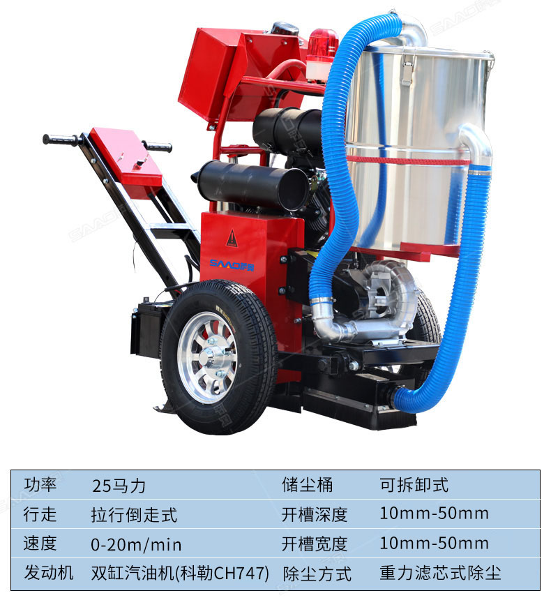 自吸塵式路面開槽機主要用于瀝青路面修補裂縫開槽的機械,其集吸塵、開槽為一體,環保性好,工作效果高,是路面開槽施工不錯的選擇。