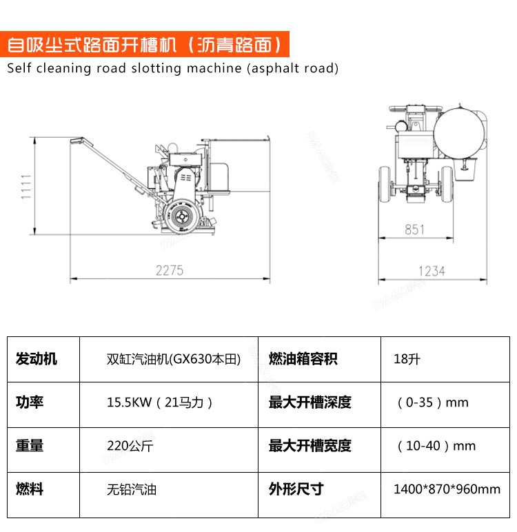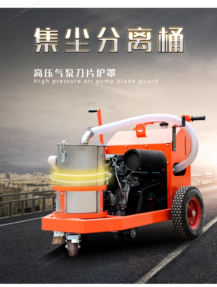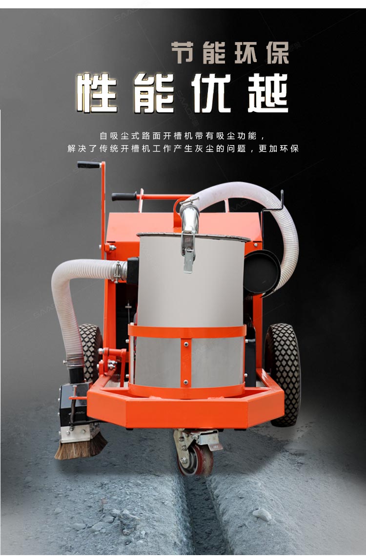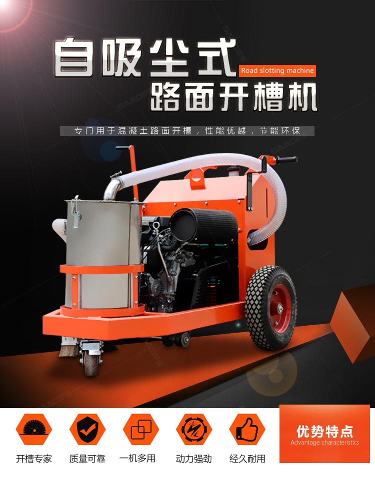 自吸塵式路面開槽機帶有吸塵功能,解決了傳統開槽機工作產生灰塵的問題,更加環保。我們這款路面開槽機是專門用于混凝土路面開槽的,性能優越,節能環保。
