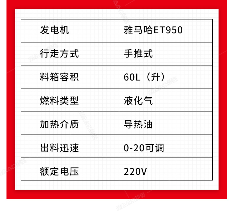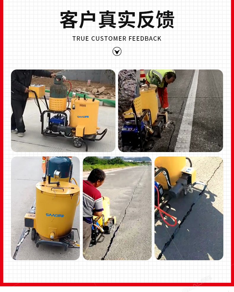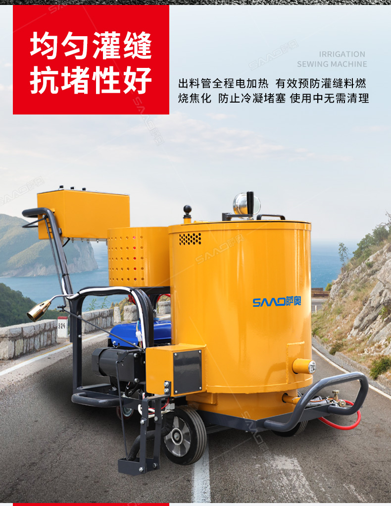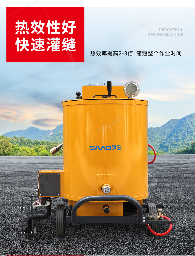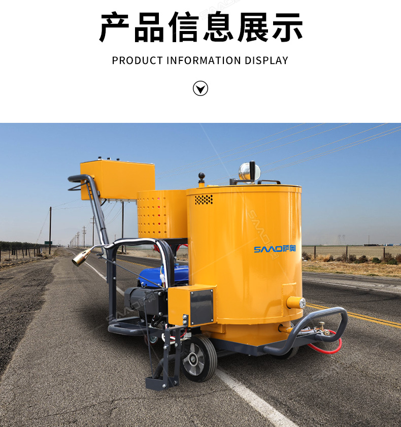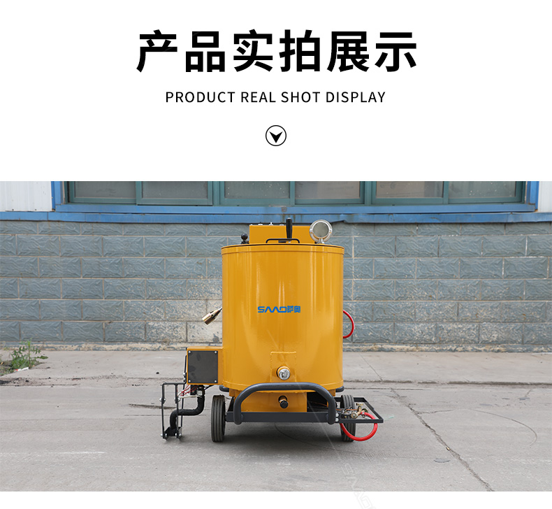 產品簡介: 用于瀝青或水泥路面裂縫瀝青灌縫。 產品型號:SGF-60 產品技術參數: 發電機型號 ET950 行走方式 手推式 料箱容積 60L 燃料類型 液化氣 加熱介質 導熱油 出料速度 0-20可調