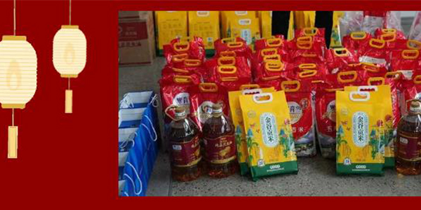 一袋袋大米、一桶桶花生油、一箱箱酸奶等