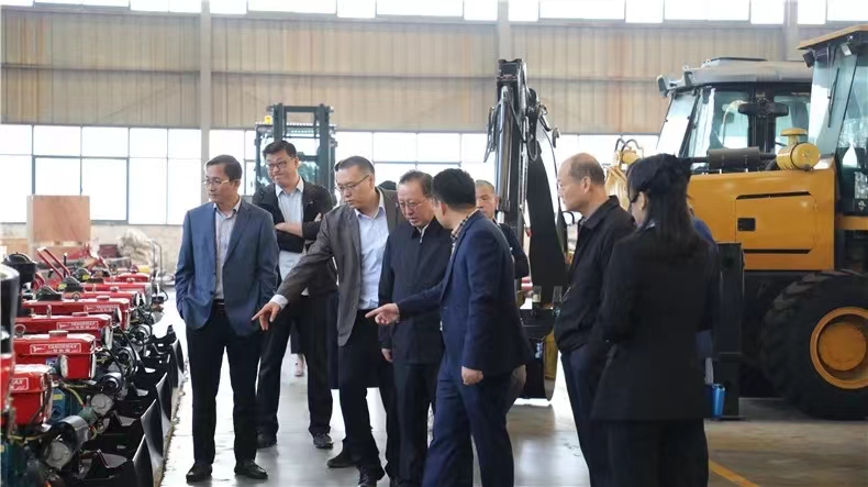 各位領導先后參觀了薩奧集團辦公區、設備展示廳,重點關注了公司主銷產品:壓實機械、液壓工具、路面養護設備、農用園林、工程照明設備等。