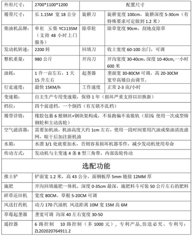 田園管理機是一種多功能小型農田作業機械。該機具有重量輕、功能多的特點,主要作業項目有深旋、噴藥、復土、鋤草、中耕、開溝、起壟、破碎、運輸、起壟覆膜、根莖收獲等。