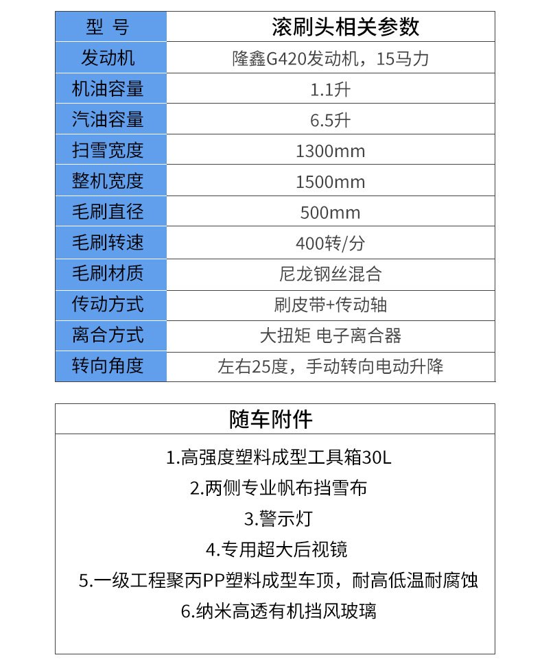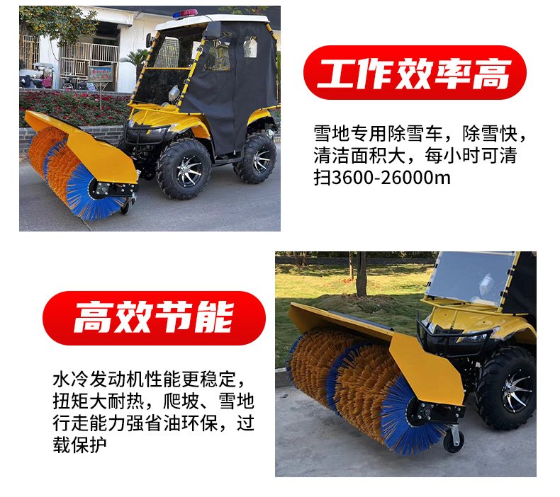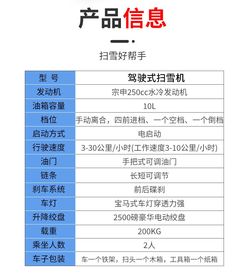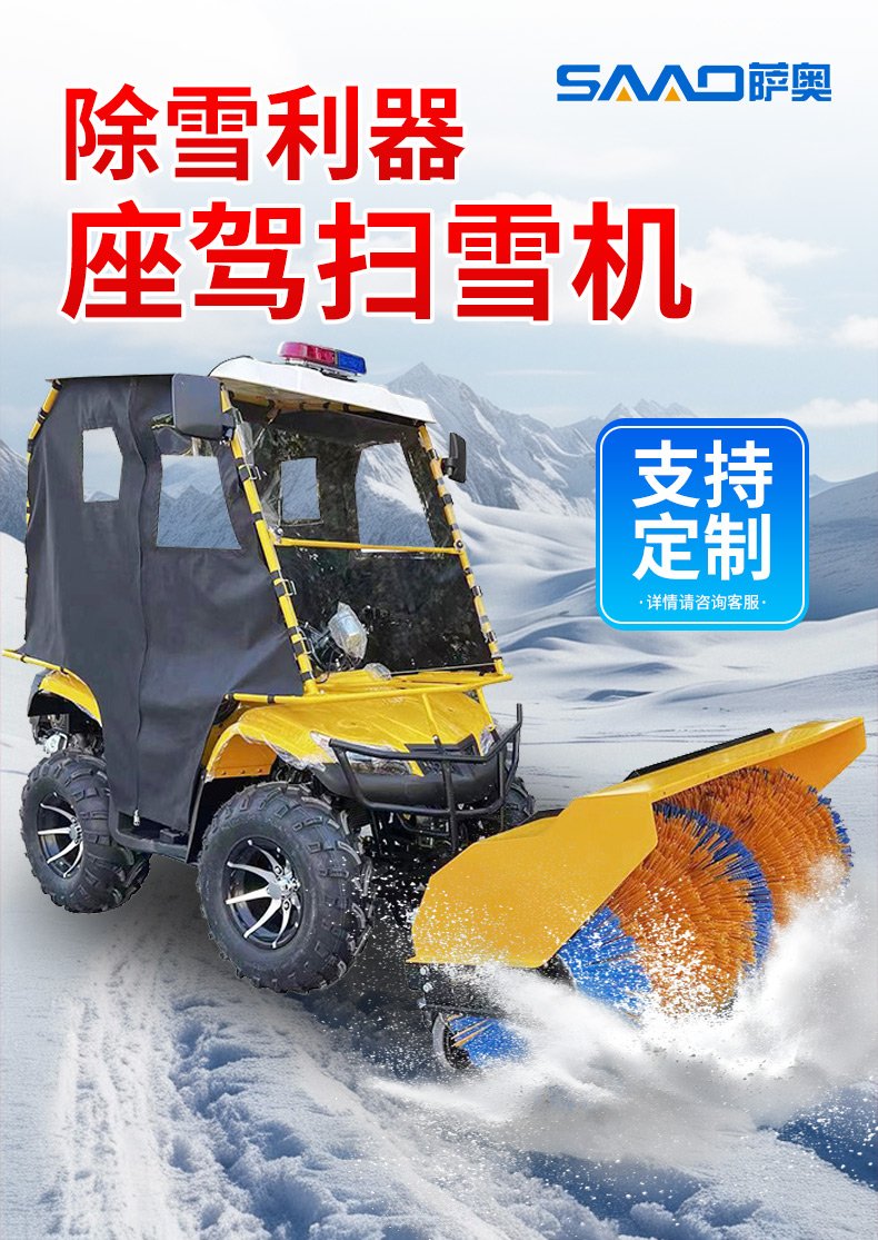 小型駕駛式除雪機,填補國內空白;掃雪滾刷,拋雪機頭,推鏟可互換;駕駛室內可加裝取暖器,掃雪不再痛苦。