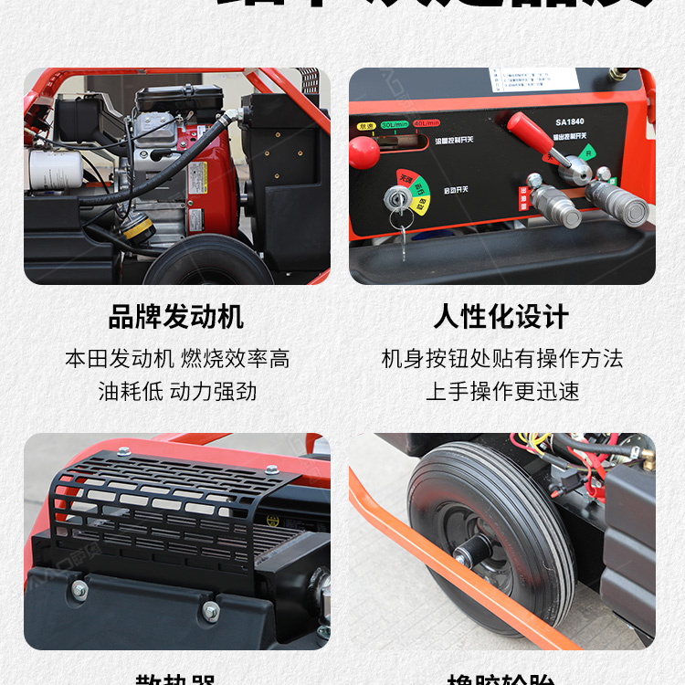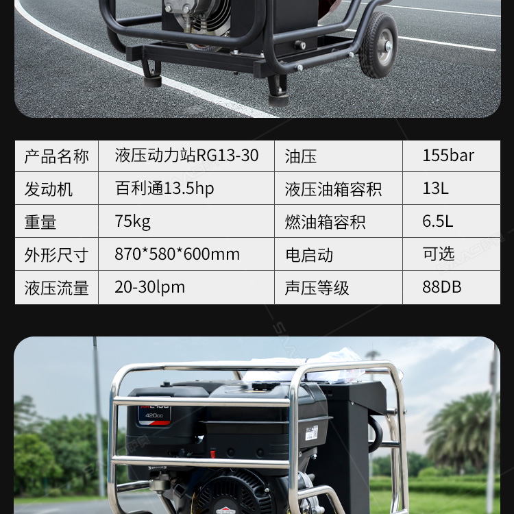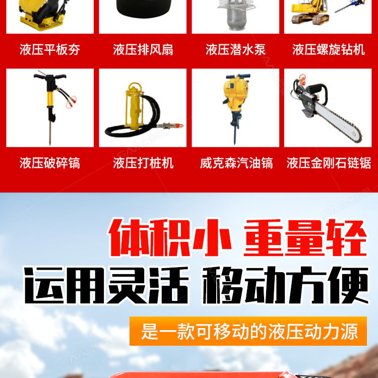 【產品用途】 在公路市政養護、燃氣自來水搶修、地震和消防救援作業中提供方便可靠的動力源。 【產品介紹】 液壓動力站是為各種液壓工具提供液壓動力的泵站,像液壓渣漿泵、液