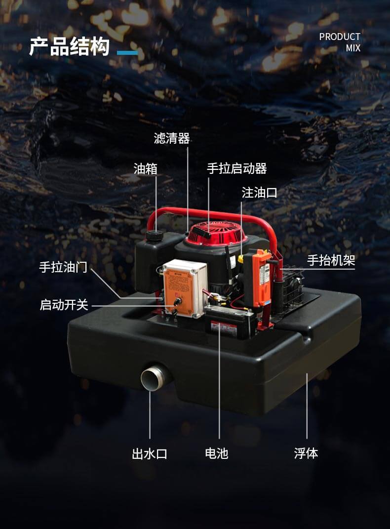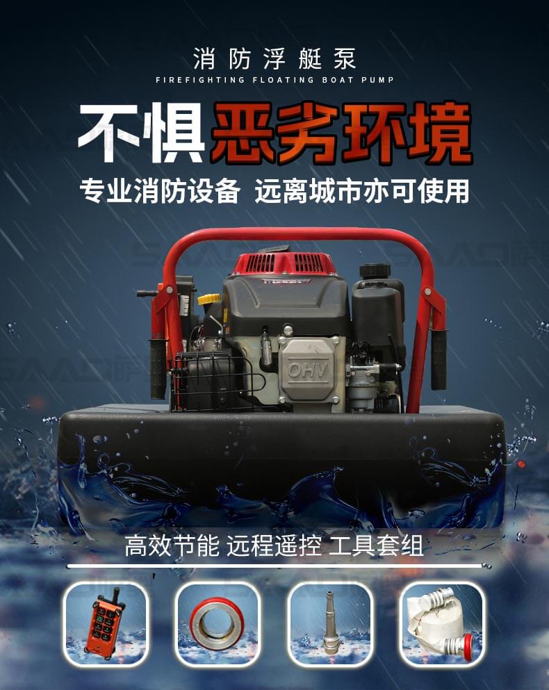 消防浮艇泵適合于城鎮、鄉村及消防車不易到達的火災現場或臨時取水,輕量化設計,聚氨酯原材料浮箱,耗油量低,操作簡單。