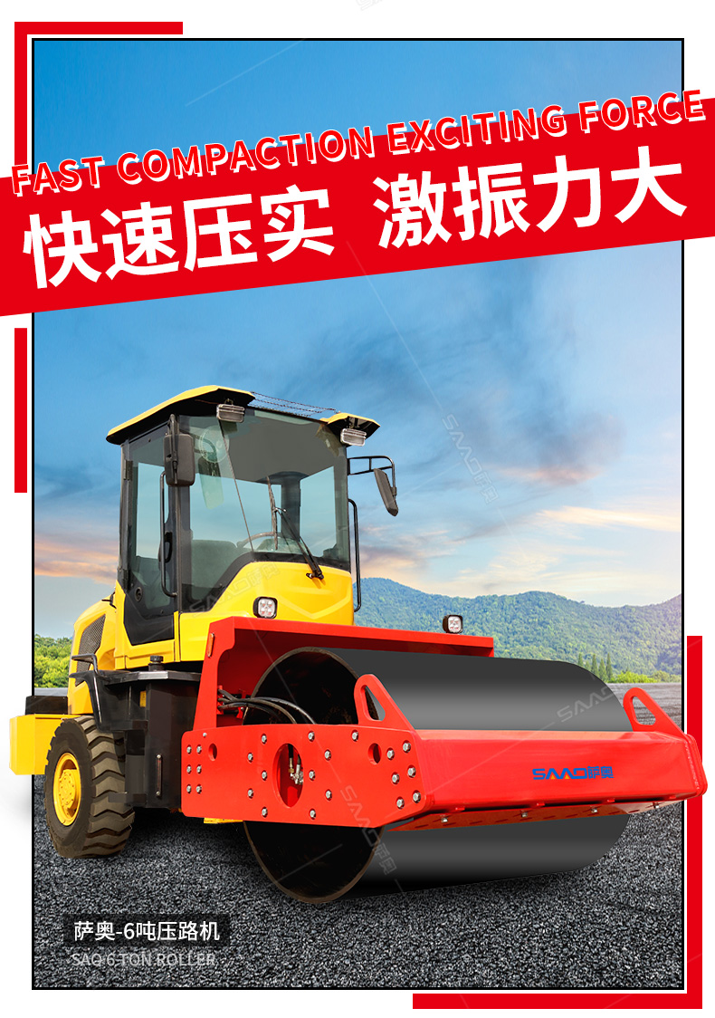 6噸壓路機主要應用市政道路、公路維護,具有強大的激震力及很高的靜線壓力,適宜于碾壓非粘性材料如礫石、礫土、碎石、砂石混合料和巖石填方以及粘土等。